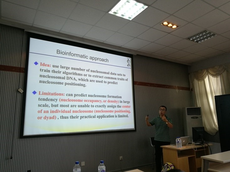 特邀内蒙古科技大学刘国庆教授于7月7日上午10:00在计算机大楼A521做了一场题为“从DNA物理特性看核小体的定位与滑动”专题报告会。