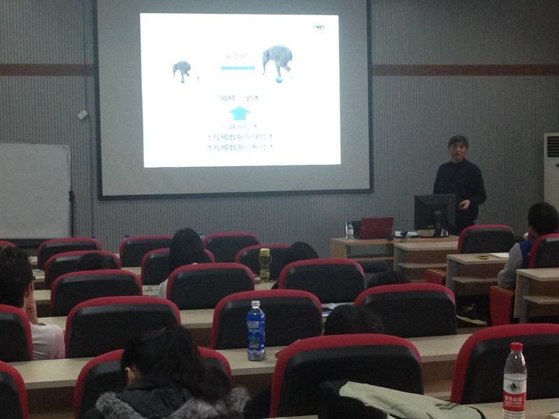 在这次讲座中,刘震教授首先从计算的进化揭示了大数据出现的必然,同时结合大数据的特点,探讨了大数据挖掘的技术、应用,最后简要介绍了他早年在长崎综合科学大学的研究成果和目前的研究内容。报告从下午3点开始持续了2个小时,刘老师与在场师生进行了热烈的讨论,同与会老师交流了各自的观点,并解答了同学们的疑惑。讲座现场学术气氛十分浓厚,同学与老师之间的互动非常充分