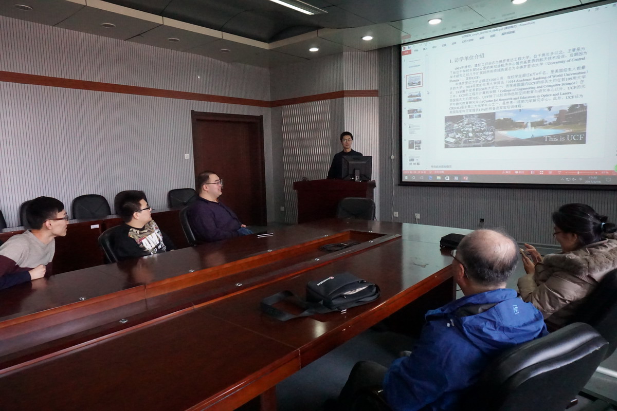 A515报告厅做了题目为“数值仿真与优化在光波导器件设计中的应用”的学术报告。报告主要介绍了曹英晖博士在美国访问学者期间的工作、生活经历,以及所取得的关于光波导器件数值仿真设计的研究结果。报告中,曹英晖博士首先介绍了中佛罗里达大学,外方合作导师Raj Mittra教授,以及访学期间的工作、生活情况,然后重介绍了其在访学期间所作的仿真计算方法研究工作,以及光子晶体耦合器和弯曲光波导的仿真优化设计工作。