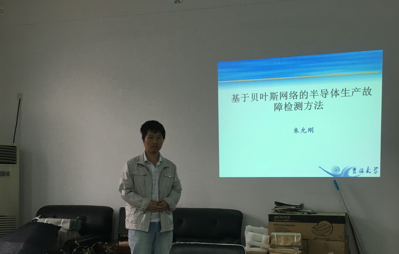 朱允刚老师做了题为“基于贝叶斯网络的半导体生产故障检测方法”的学术报告。报告中,朱允刚老师首先介绍了贝叶斯网在半导体晶元生产故障诊断领域的应用背景,然后从模型的表示、推理及学习三方面具体介绍了为解决该问题所设计的贝叶斯网络及相关算法。在模型表示方面,设计了一个基于一阶马尔科夫假设的贝叶斯网络来表示半导体晶元生产过程中多个阶段的监测信息和故障状态之间的依赖关系;在模型推理方面,针对所设计贝叶斯网络结构的特点,给出了基于递推方式的高效推理方法,进而实现故障预测;在模型学习方面,基于EM算法从数据中学习该贝叶斯网络。