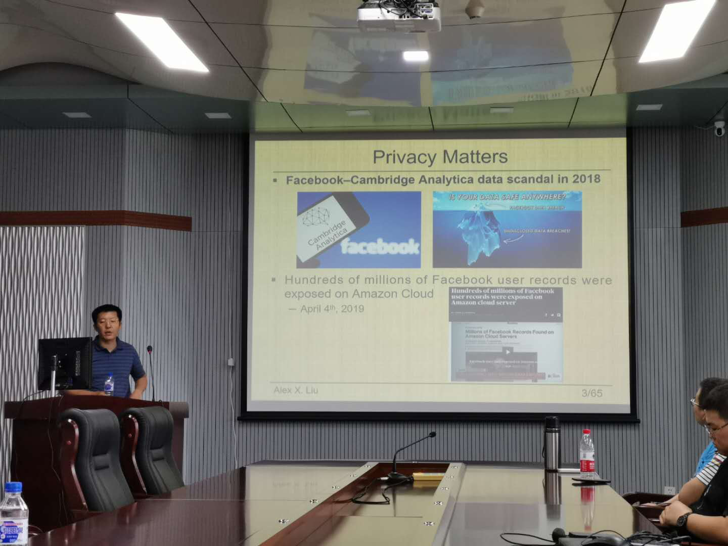在本次报告中,Alex X. Liu教授针对云计算中的隐私保护问题,介绍了他在高速查询处理过程中保持强隐私保护的工作。他的研究工作可在范围查询和关键词查询时达到可信安全和计算开销的双重目标,在安全目标上使用最强的自适应安全模型,在性能目标上可达到百万记录上的毫秒级查询。在报告最后阶段,Alex X. Liu教授悉心的回答到场师生的问题。本次报告受到了广大师生的热烈响应。