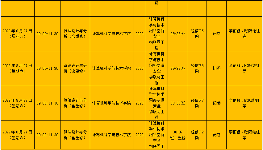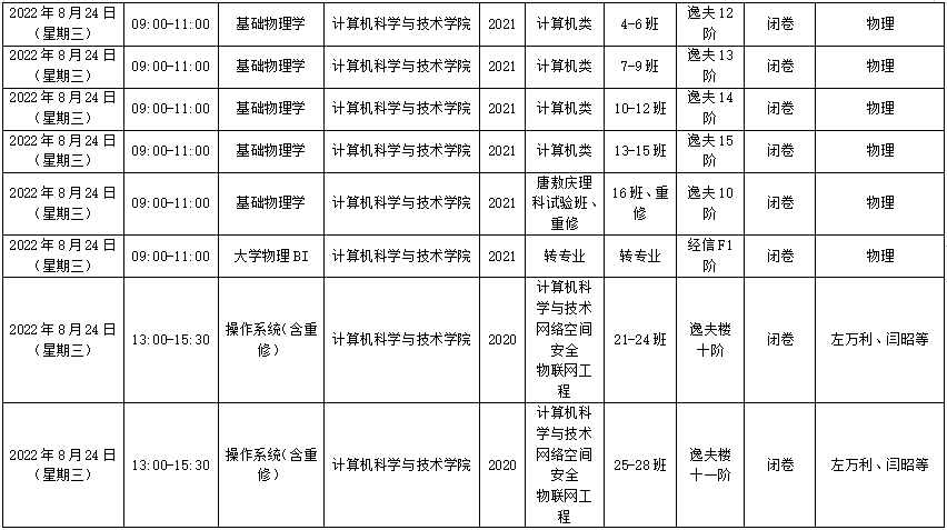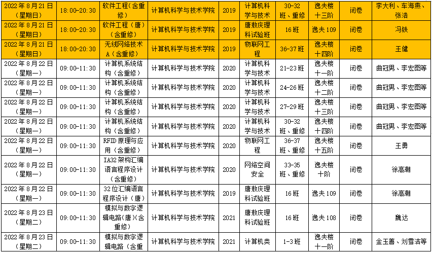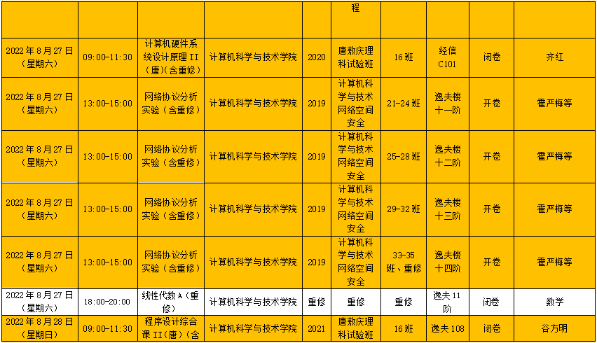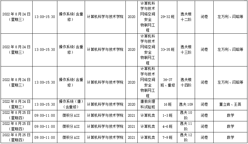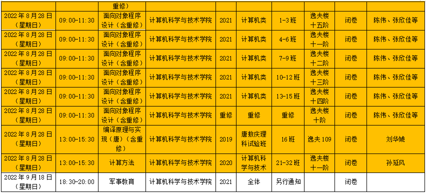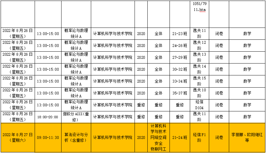 6)考试时间调整过的考试已标注好,请同学们注意考试时间。