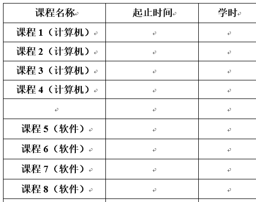 工作量计算方法算得的工作量值,如果不清楚,学时这栏可空着,本人工作量不清楚可空着。
