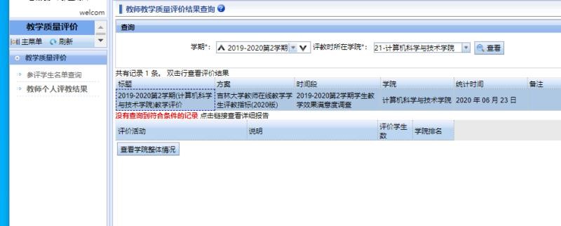 4、学生网上评教数据请登录教务系统查询,位置请见下图: