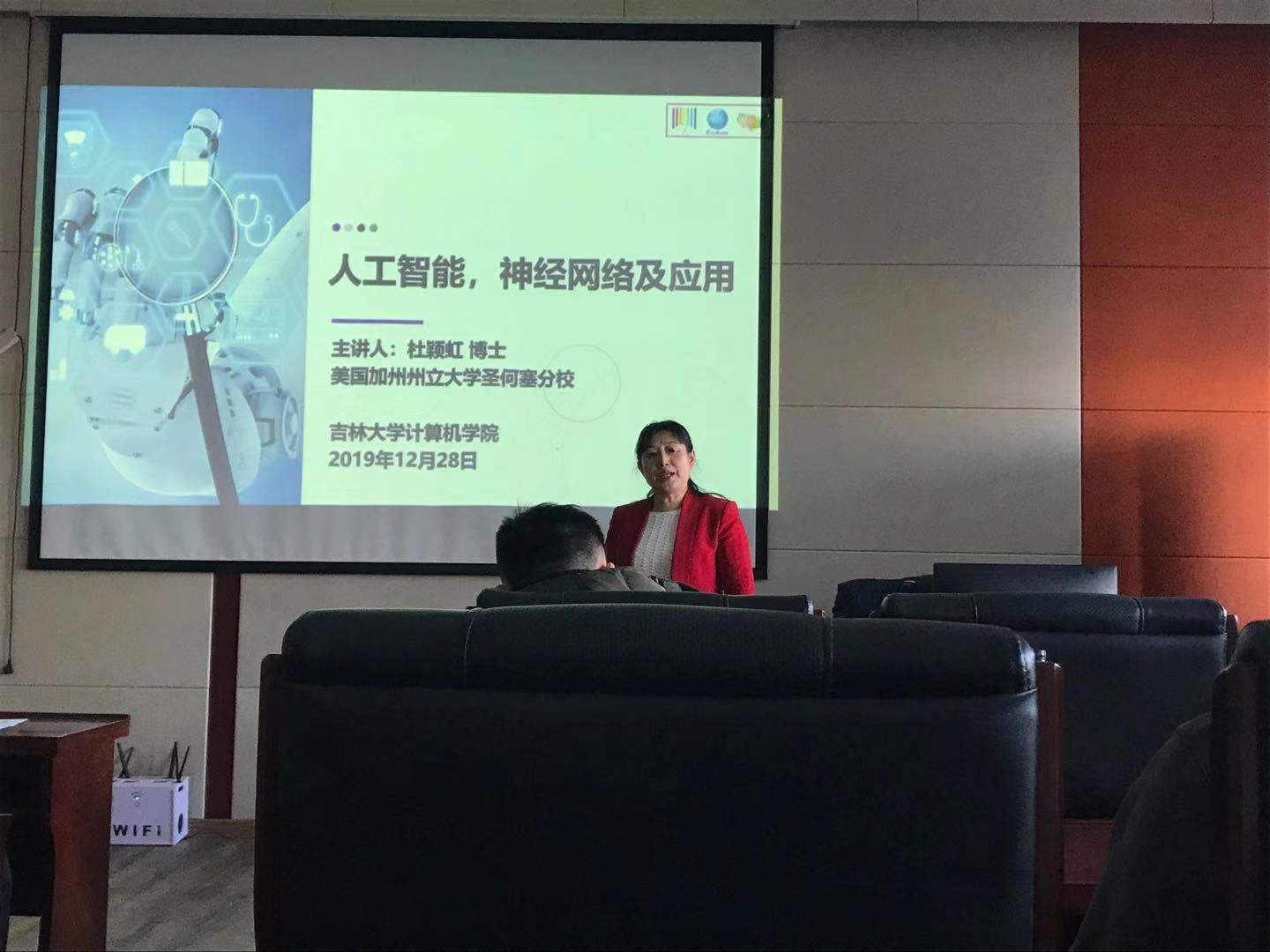 2019年12月28日上午9:30,来自美国圣何塞州立大学的杜颖虹教授在计算机楼A521室做了题为《人工智能、神经网络及应用》的学术报告。此次学术报告由杨永健教授主持,富豪娱乐城