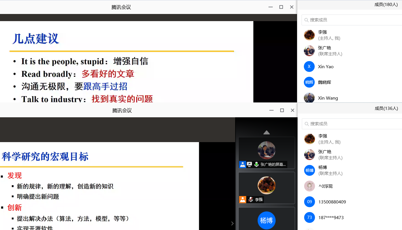 共有180多位教师、在站博士后、高年级博士生在线参与了讲座。