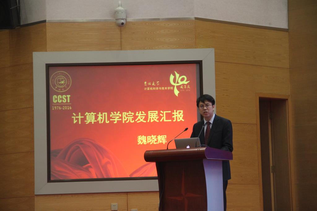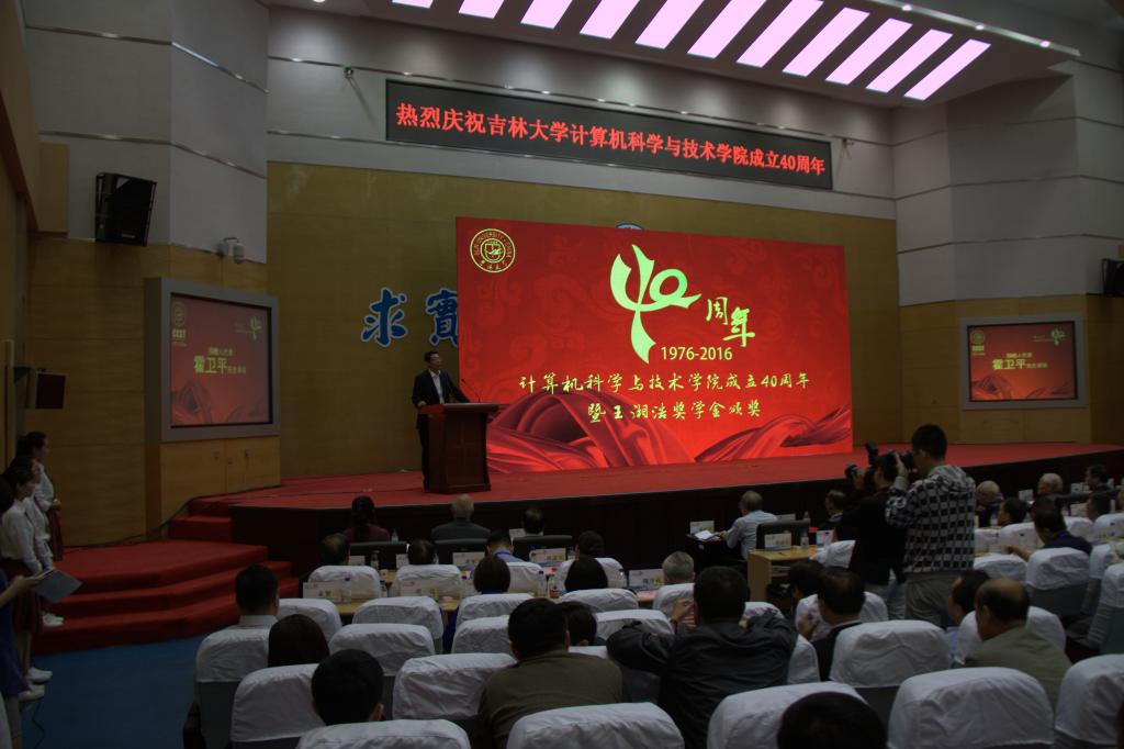 王湘浩奖学金管理委员会致辞。他介绍了王湘浩院士在科学上的杰出成就,在教育事业上建立的卓越功勋,以及王湘浩奖学金的由来发展,并感谢社会同仁和广大校友的无私奉献和大力支持。接着,刘大有教授宣读了2016年王湘浩奖学金获奖名单,希望获奖学生能够珍视荣誉,戒骄戒躁,锐意进取,争取更大的成绩。