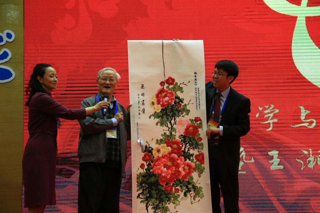 数学所陆汝钤院士致辞。他深情地回忆了和王湘浩教授的友谊,共同工作的经历,感谢王教授当年对他的帮助,并表达了对王教授的深切怀念,他还现场赠送了一幅亲自用计算机设计制作的画并亲笔题字,以表达对富豪娱乐城