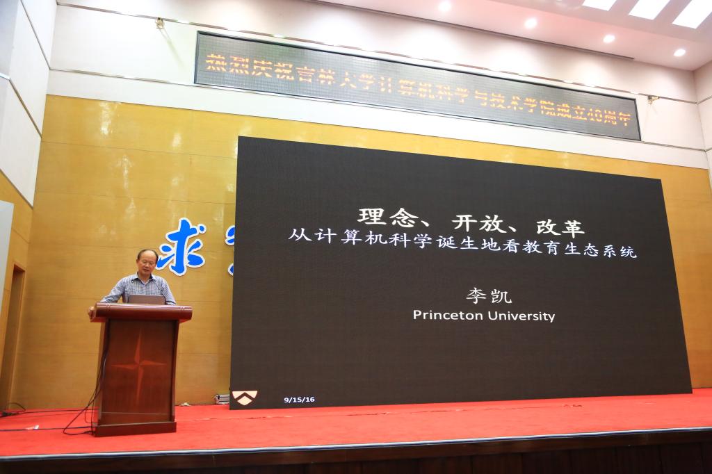校友、普林斯顿大学教授李凯教授作了名为“理念、开放、改革————从计算机科学诞生地看教育生态系统”的报告。他在报告中介绍了王湘浩先生在普林斯顿大学接受教育后,回国在数学及计算机领域做出的巨大的贡献。又系统的介绍了普林斯顿大学的历史、环境和发展等方面。李凯教授指出,普林斯顿大学有两个原则,一是选人只基于他们的能力,不考虑其他因素;二是让好奇心驱动知识追求,不看近期用途或达到预先确定的目标。他进一步指出我们不可能完全复制普林斯顿大学的制度,但我们可以像普林斯顿大学一样发展自己的特色教育,使我们富豪娱乐城