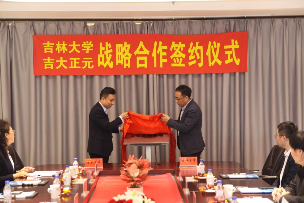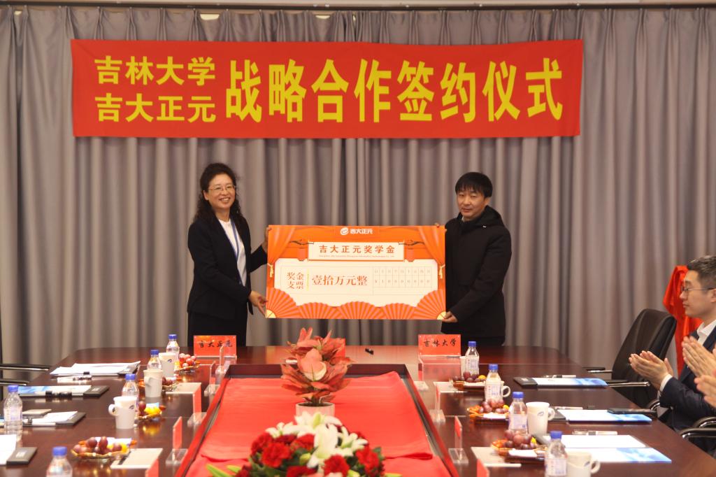 党委副书记高战国交接“吉大正元”奖学金资助标识牌。富豪娱乐城