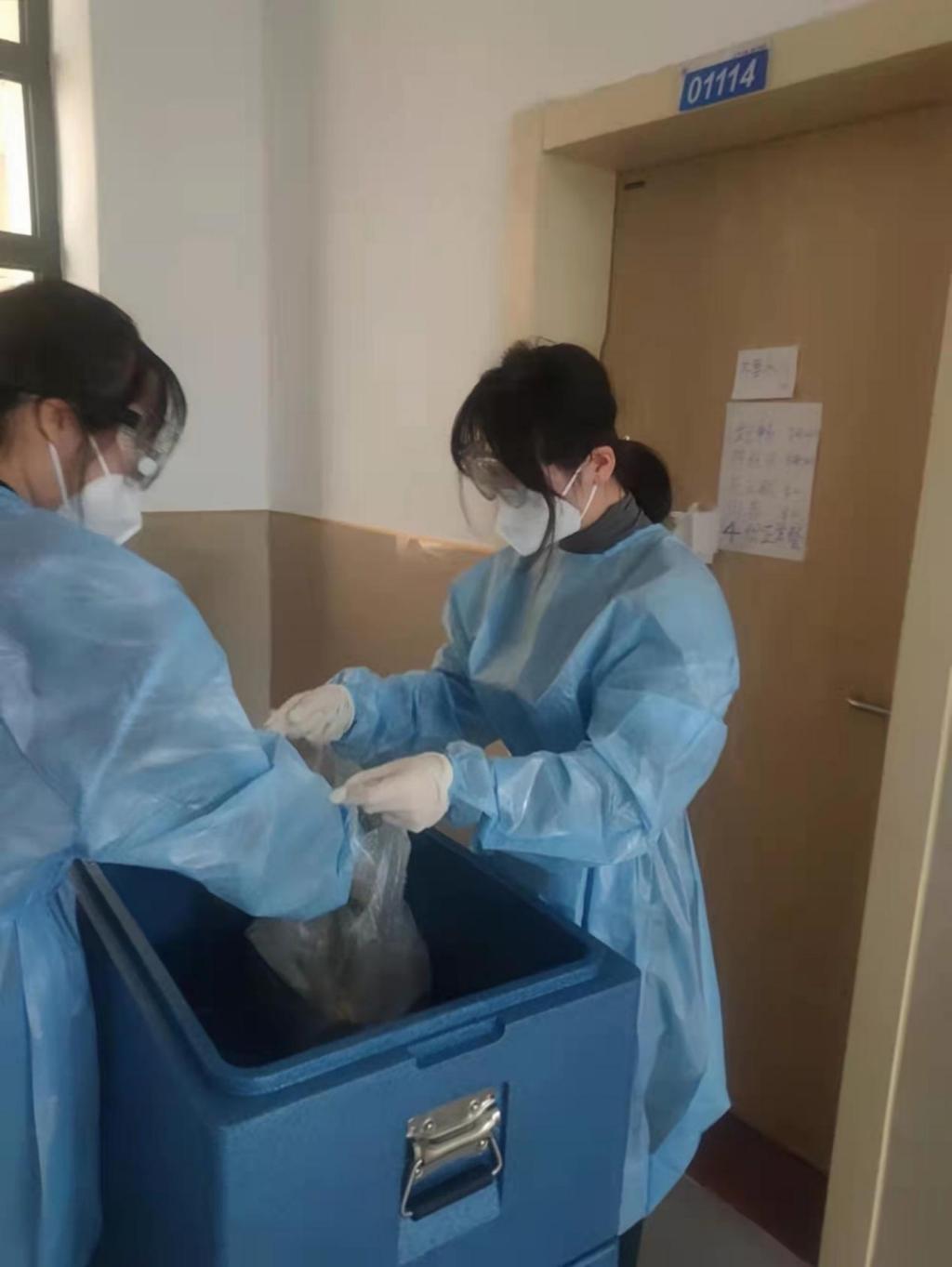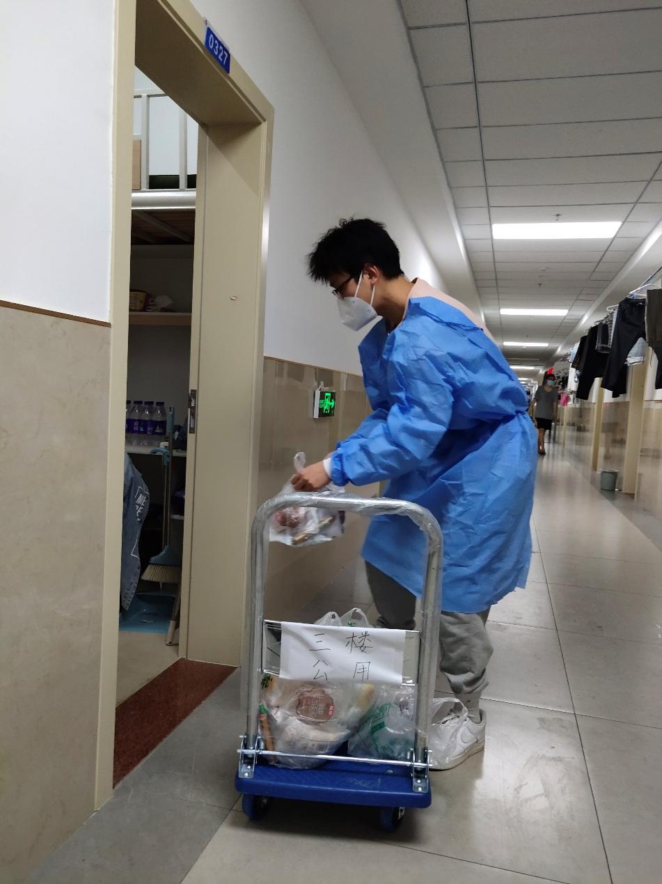 在线下活动中,各位党员同志们积极参加到对应楼层的志愿工作中,主动承担起服务同学们的工作。同学们在做好防护的前提下,井然有序的运输并分发午餐和矿泉水,并为每一位同学配发了酸奶和维生素泡腾片。通过各位党员同志的团结协作,平日中枯燥辛苦的工作很快就结束了。同学们纷纷表示通过志愿服务,自己的内心得到了满足感和自豪感,同时也更加理解了作为志愿者的辛苦。