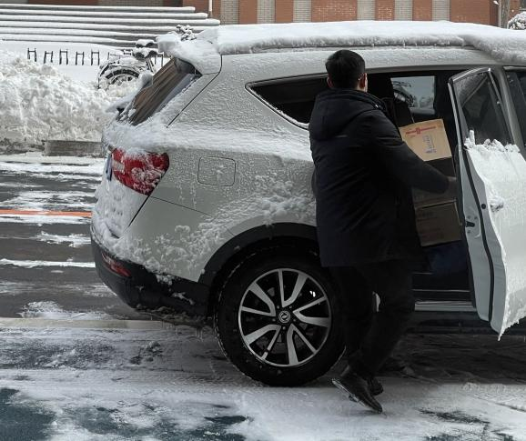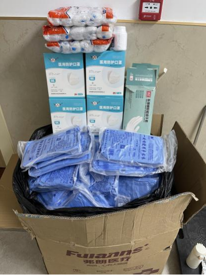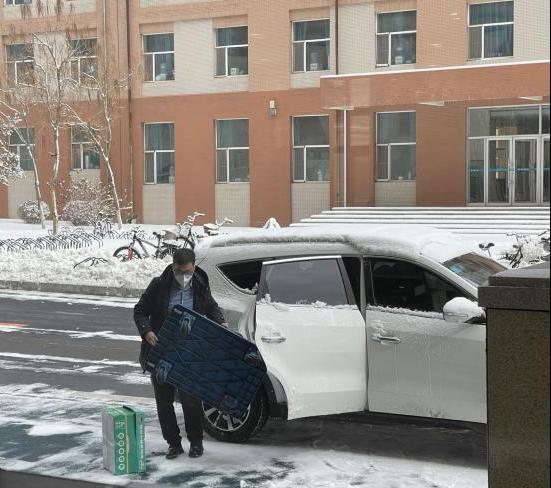 高战国副书记与何老师亲赴一线,为同学们送来防疫物资,解决了送物资难,缺物资急的燃眉之急。