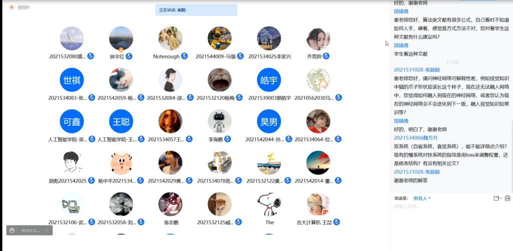 副院长王喆教授主持提问环节,各位同学在学术疑难、科研建议以及文献阅读等方面的问题上踊跃发言,崔鹏老师依次予以耐心解答,并就自己的经验感受和同学们进行交流,同学们在了解了人工智能最新发展情况的同时也积累了很多论文写作相关知识。两院师生在本期学术报告中充分享受到知识带来的力量,这无疑在疫情防控的攻坚期给我们带来了希望和活力。相信在全体师生的共同努力下,我们一定可以共克时艰、渡过难关!