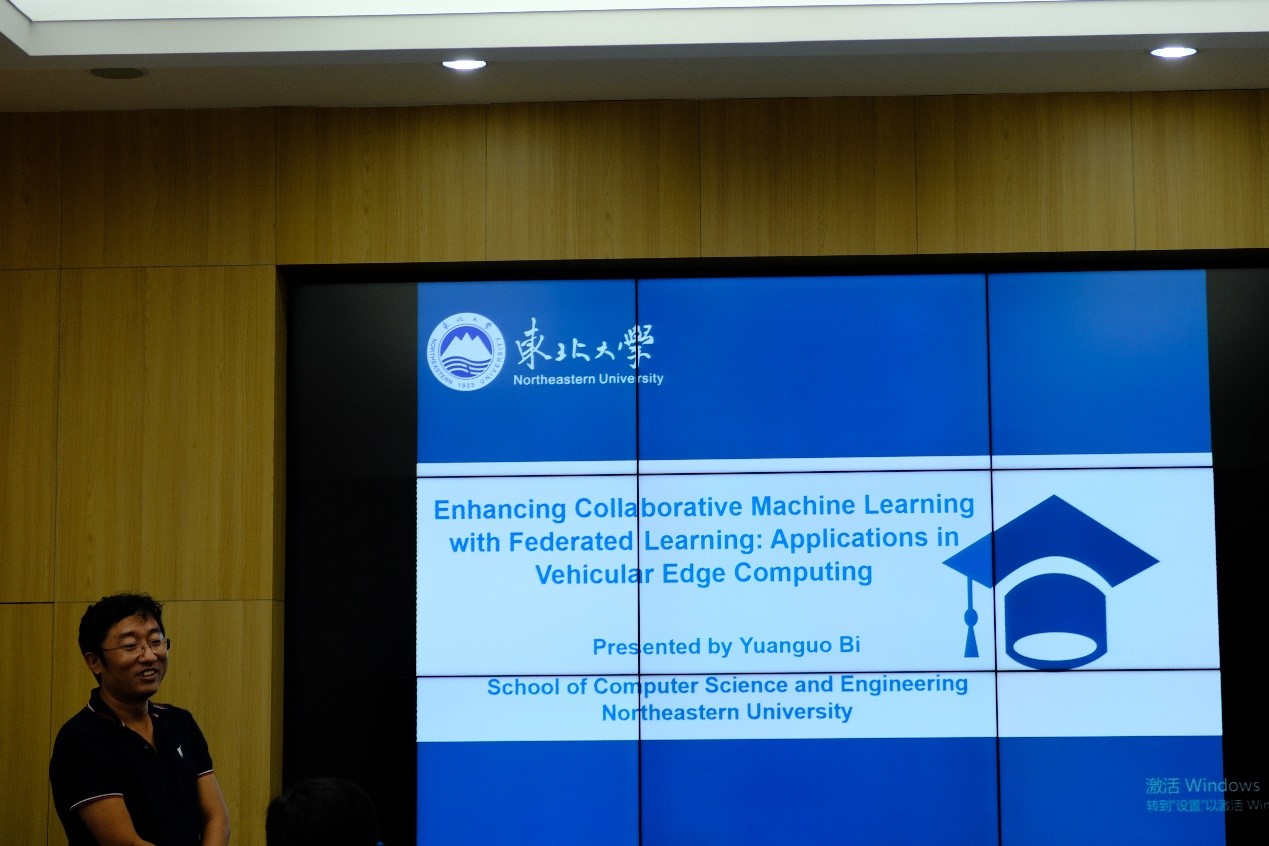 在本次报告中,毕远国教授介绍了一种自适应协作联邦学习方案。该方案采用动态本地训练轮次调整方法和协作边缘服务器训练方案,以提高模型可靠性并减少通信轮次。此外,在多个联邦学习系统的场景下,毕远国教授又介绍了一种边缘服务器再分配方案,以提高训练效率和网络资源利用率,同时减轻异构数据的影响,并根据此方案与同学展开了讨论。
