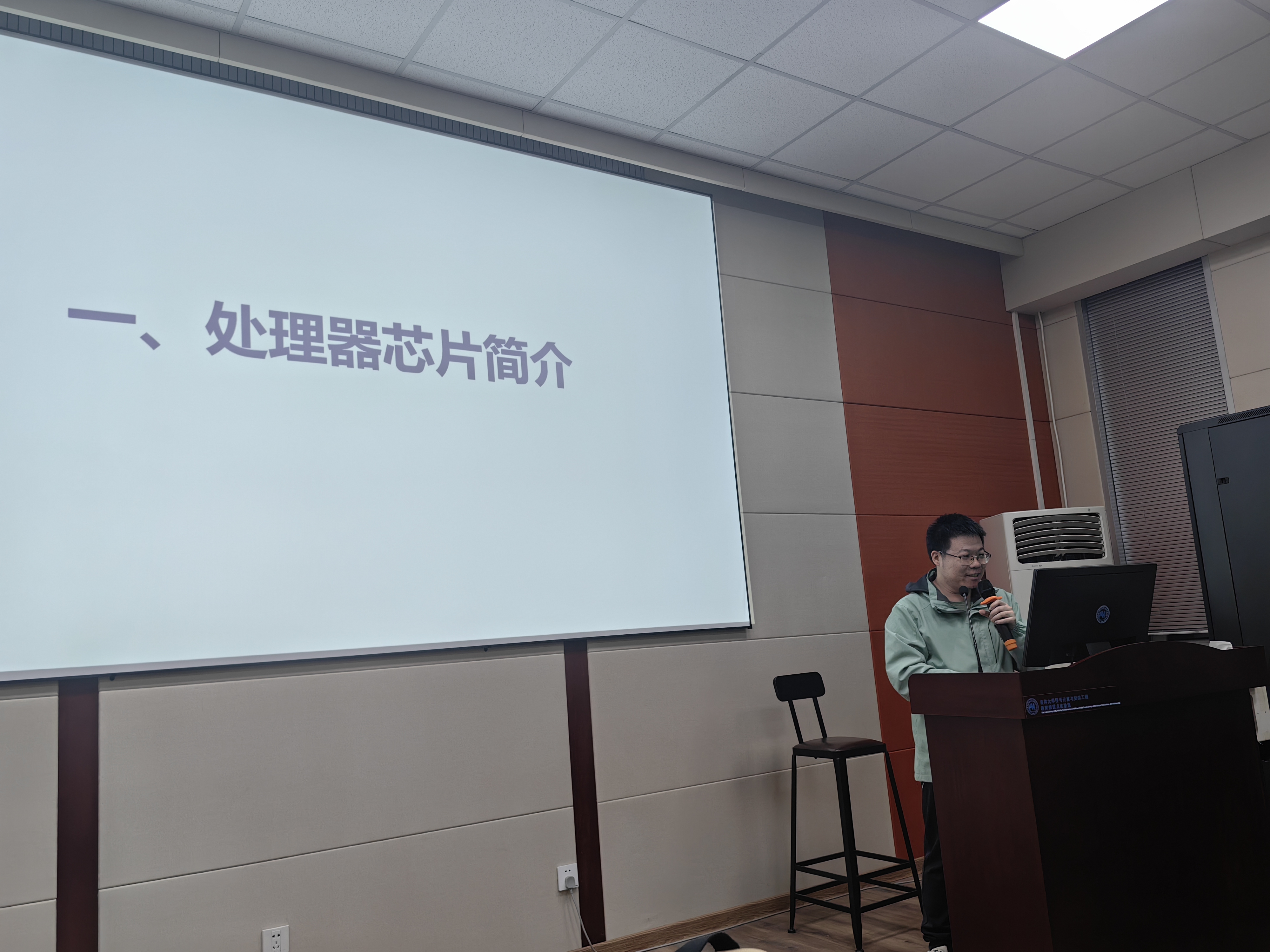 为同学们讲解“一生一芯”人才培养计划,并带来了一场题为“处理器芯片发展新趋势:开源芯片”的报告。