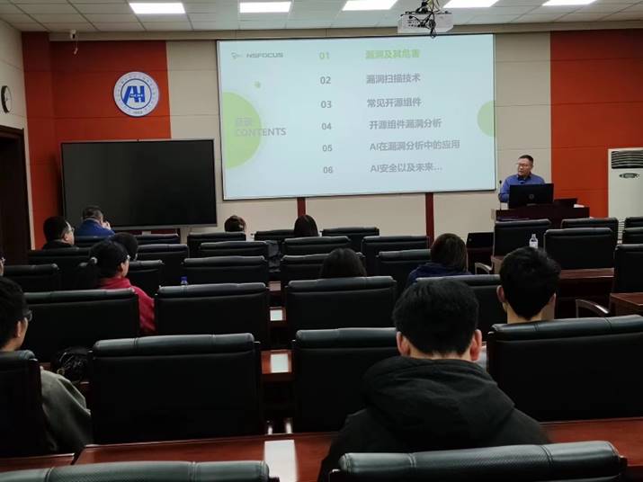 师生进行了题为“开源漏洞分析以及AI在漏洞分析中的应用与发展”的技术培训讲座,富豪娱乐城