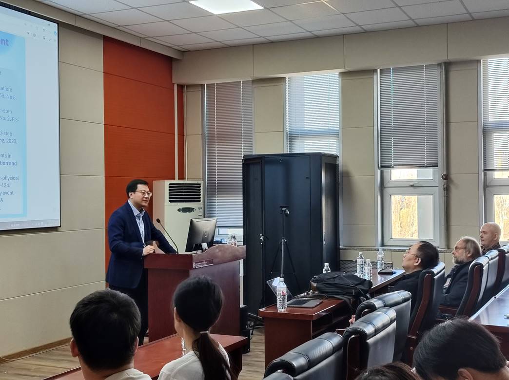 学术报告环节,Vladimir Mazalov教授介绍了动态博弈中联盟分区的稳定性,引入了动态对策中动态稳定纳什联盟分区的概念,介绍了联盟作为统一参与者的纳什均衡,并讨论动态稳定性,其中参与者没有动机切换联盟。