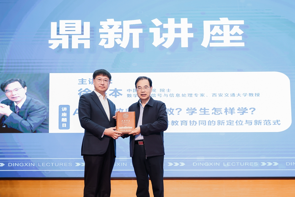 校长张希出席讲座,并为主讲教授颁发鼎新讲座纪念牌。