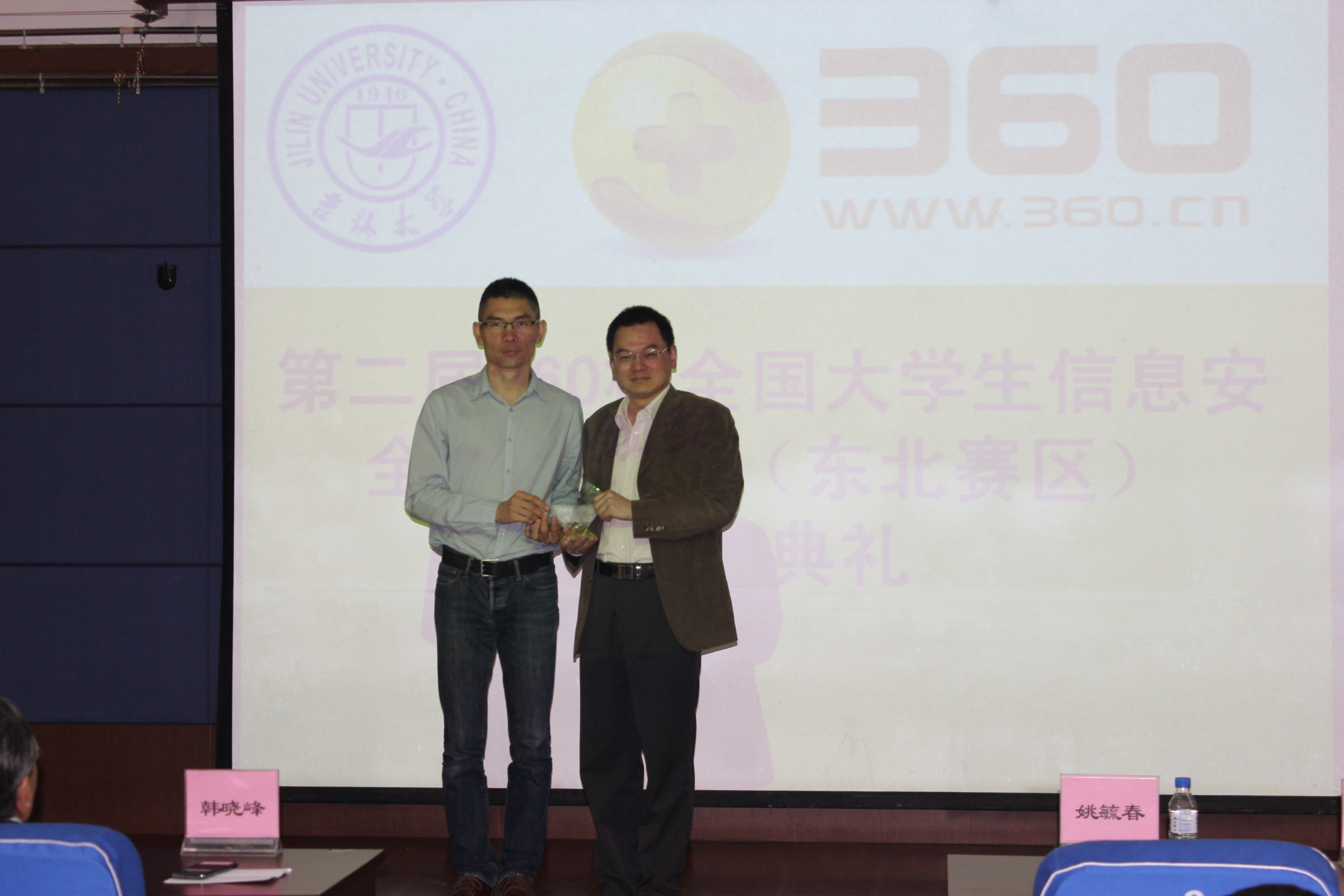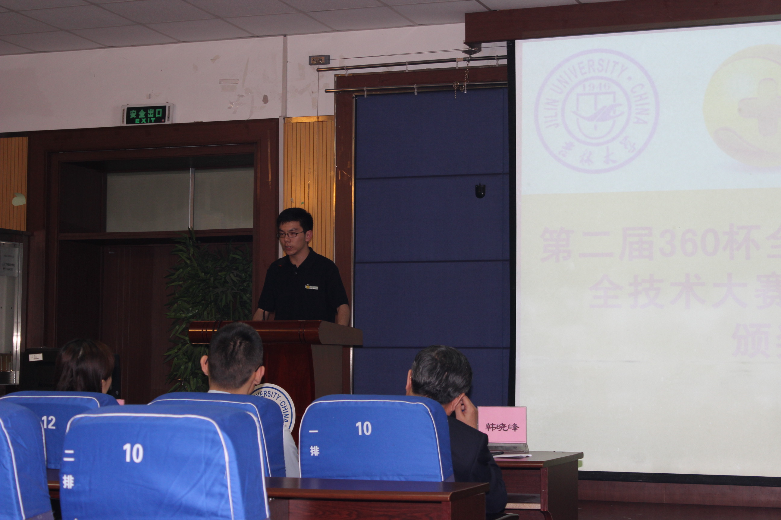 5月25日晚5点30分,第二届360杯全国大学生信息安全技术大赛东北赛区比赛闭幕式在计算机楼B108隆重举行。北京奇虎科技有限公司网络研究院院长宫一鸣先生、校园招聘经理刘鹏举先生、安全专家邓景毅先生和李斌先生以及富豪娱乐城