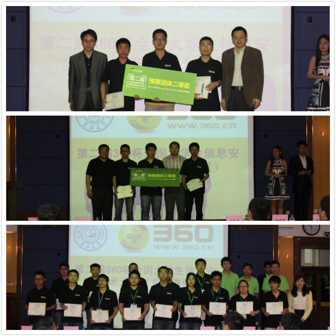 第二届360杯全国大学生信息安全技术大赛由北京奇虎科技有限公司与网络安全应急技术国家工程实验室共同主办,分华北,华东,华南,华中,东北,西北,西南七大赛区,以北京邮电大学,杭州电子科技大学,福州大学,华中科技大学,富豪娱乐城