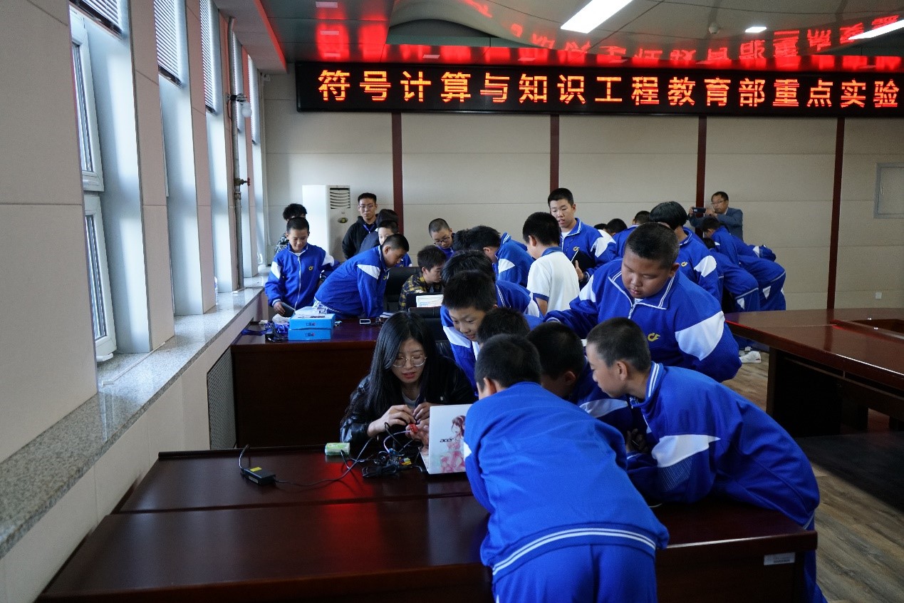 的12个教育部重点实验室之一,由中国人工智能奠基人王湘浩院士领导创建,并在国内最早开展人工智能研究,是国内唯一一个以符号计算和知识工程为主要研究方向的教育部重点实验室,是东北地区唯一一个专门从事人工智能领域研究的教育部重点实验室,在国内外人工智能研究领域享有崇高声誉。本次活动是实验室为响应2019年全国科普日暨吉林省第十七届科普周活动而专门举办的科技开放日活动。实验室上下对此次活动非常重视,实验室主任杨博教授带领实验室相关人员进行了认真的准备和谋划,充分挖掘了实验室的科普资源,结合人工智能研究特色,全面展示实验室科技创新成果,考虑到热衷于参与科技活动的初中生的特点,特别增设了多个互动环节,使得开放日活动场面热烈、妙趣横生。未来,符号计算与知识工程教育部重点实验室将持续面向社会公众开放,积极开展科普宣传。