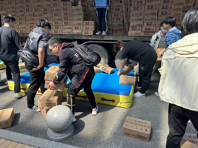 的孩子们一起动手,共同搬运五千箱物资。这一过程中,他们相互协作,共同完成了这项有意义的工作。学生们的积极参与和无私奉献,展现了当代大学生的良好形象和高尚品质。