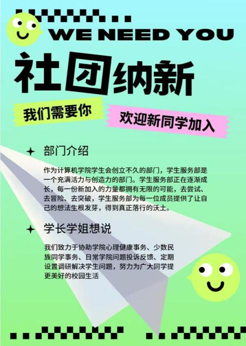 学生服务部这个大家庭正期待你的到来,让我们一起携手共进,开启精彩有趣的校园生活!