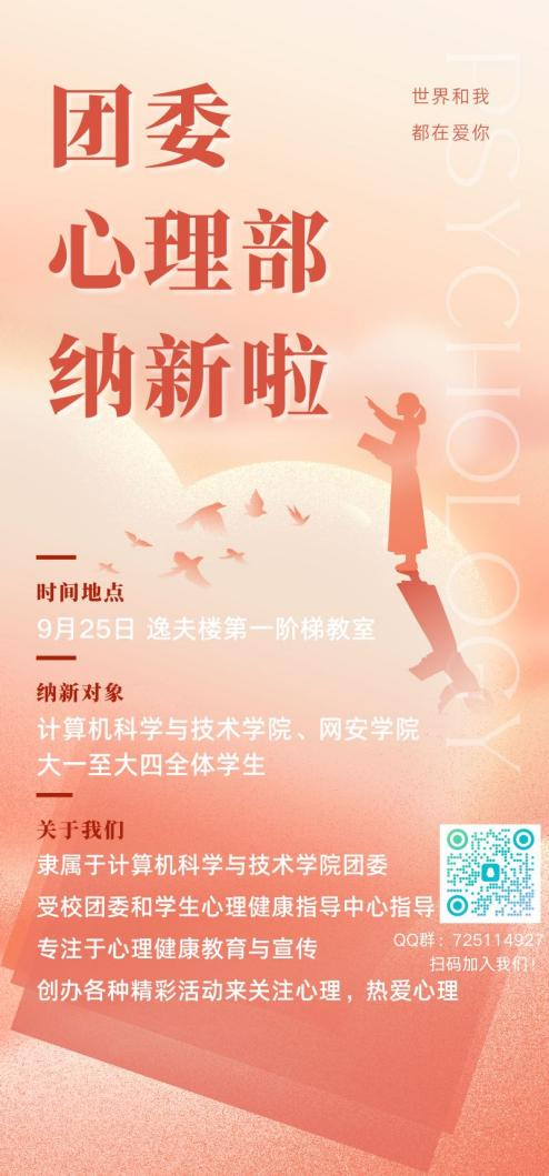 世界和我爱着你,我们是团委心理部。