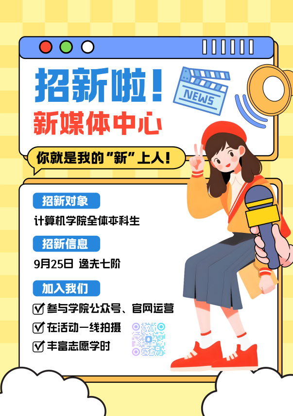 招新宣讲会将于下周三9月25日晚6点30分在逸夫楼第七阶梯举行,期待你的参与!