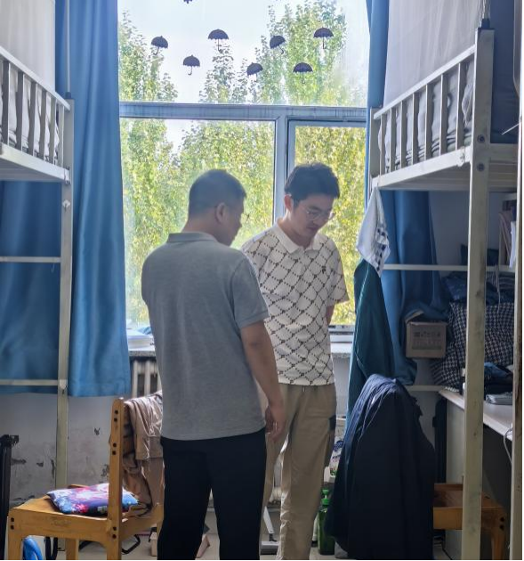 本科生辅导员深入学生公寓,开展全面的寝室安全检查工作。