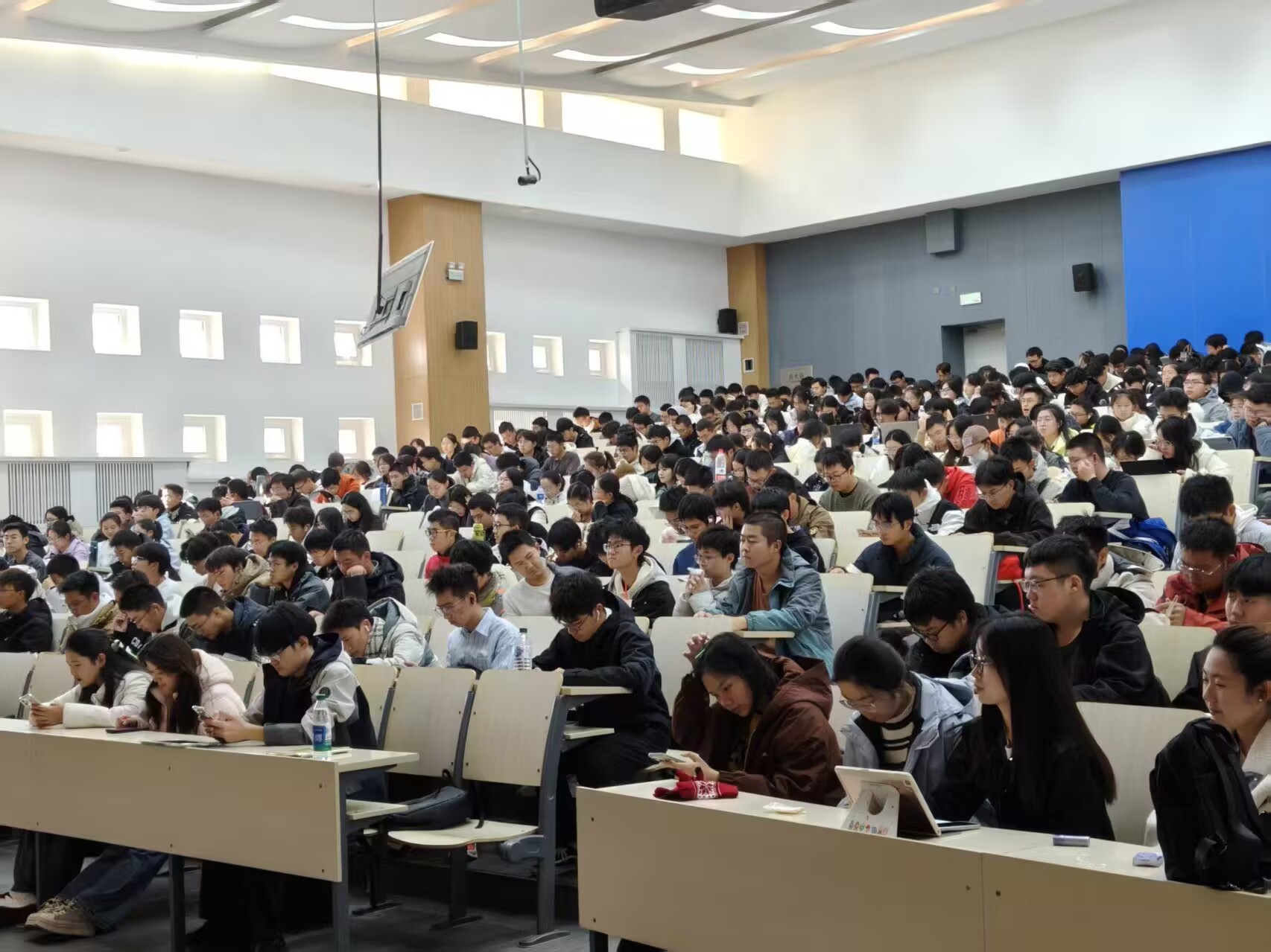 在逸夫楼第 10 阶梯教室举办 2025 级新生思政课。由富豪娱乐城