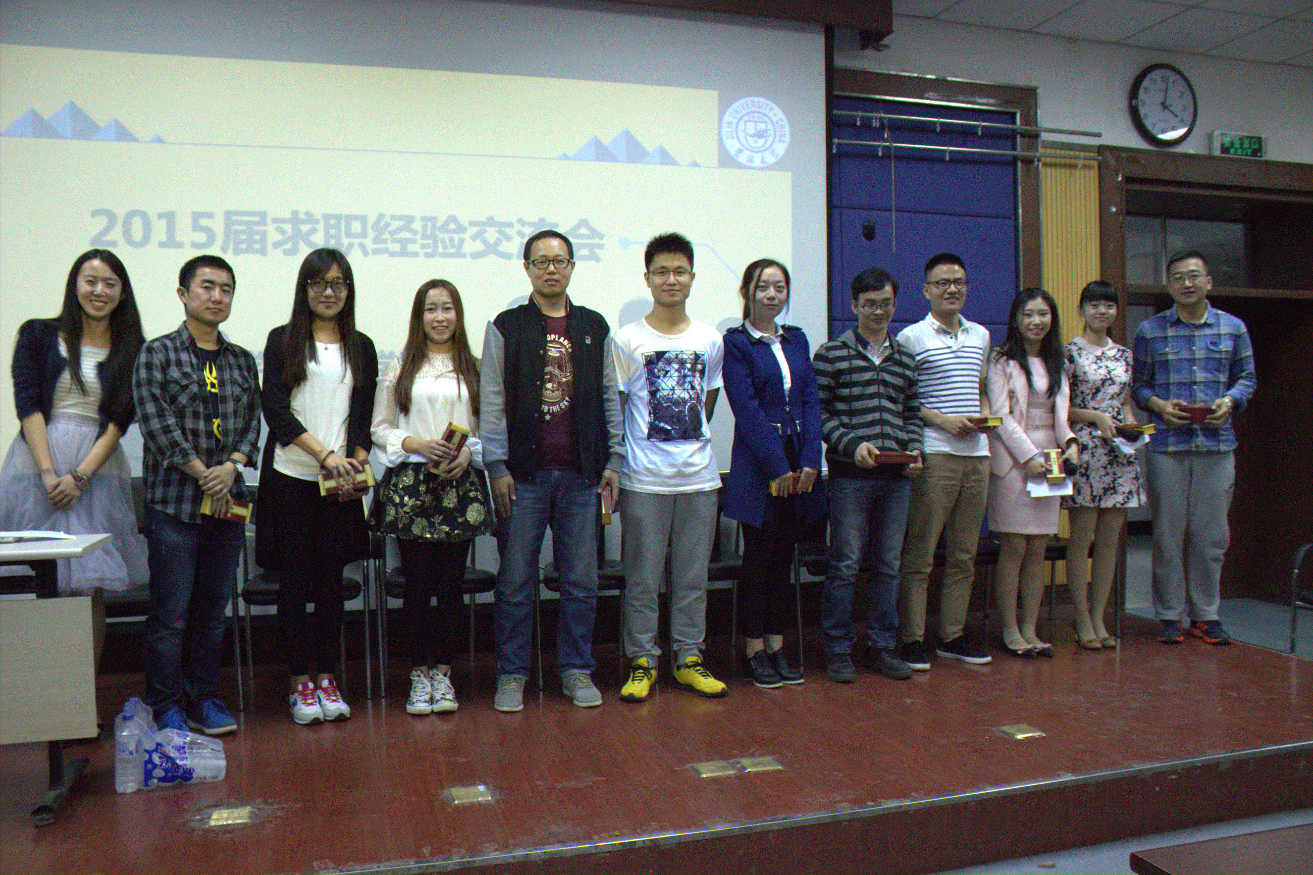 5月21日下午14:00,求职经验交流会于计算机大楼B108教室隆重开幕。本次求职经验交流会邀请到罗琛、蒋美迪、秦善培、刘杨、秦善培等九位师兄师姐作为嘉宾,他们都是2015届毕业生中的佼佼者,在校期间分别获得了各种奖学金及荣誉称号,并成功签约中国登记结算公司、阿里巴巴、一汽大众、腾讯、百度、中国人民银行等知名企事业单位,罗琛同学更是拿到计算机专业排名全美TOP20的莱斯大学的OFFER。本次交流会由三部分组成,首先由杜书记分析了近年的就业形势,随后从就业工作的重要性、就业的层次、就业的原则、就业的准备,就业的要求以及未来工作中如何处理好各种关系等几方面做了详尽的阐述;接着柳一君同学为大家汇报了富豪娱乐城 2015届硕士毕业生就业情况,真实详尽的数据表明富豪娱乐城 毕业生就业率达97%,在全校范围内遥遥领先;接下来的嘉宾交流访谈环节,9名嘉宾同时列席,两位嘉宾主持按照求职流程——从找实习、前期准备、笔试、面试到签约——分主次、有重点的向不同嘉宾提问,且随时宣读观众传递上来的纸条,请师哥师姐解答。各位嘉宾充分挖掘、总结自己求职期的经验、心路历程等,从笔试准备到面试方法,从简历制作到信息渠道,从宏观定位到细节落实,毫无保留的与学弟学妹分享。不时还会有嘉宾用幽默的言语讲述自己或心酸、或传奇的经历,赢得掌声阵阵,将现场气氛推向高潮。此次活动持续了近三个小时,会后仍然有许多学弟学妹们意犹未尽,来到讲台向师兄师姐们请教,交流会在温馨和谐的气氛中落下帷幕。