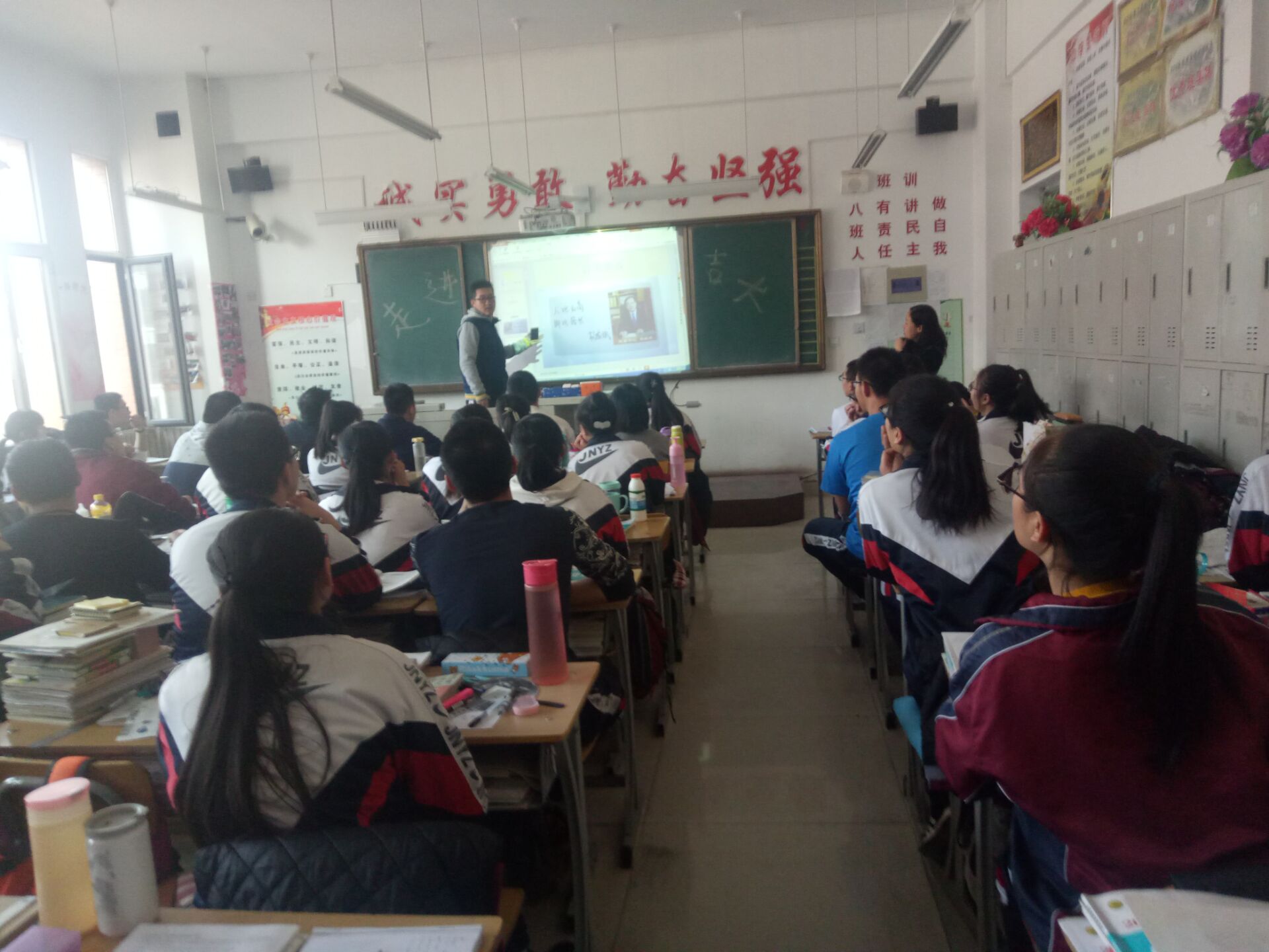 领导老师的允许后,由教务处主任带领他们到高三年级的一个班级进行宣讲。走进教室便可以感受到浓厚的学习氛围,高三学子们都低着头为高考努力拼搏着。老师向大家介绍了侯文举等人,同学们对他们的到来表示热烈的欢迎。首先,侯文举向学弟学妹们介绍了自己的大学生活,又通过PPT详细地介绍了富豪娱乐城