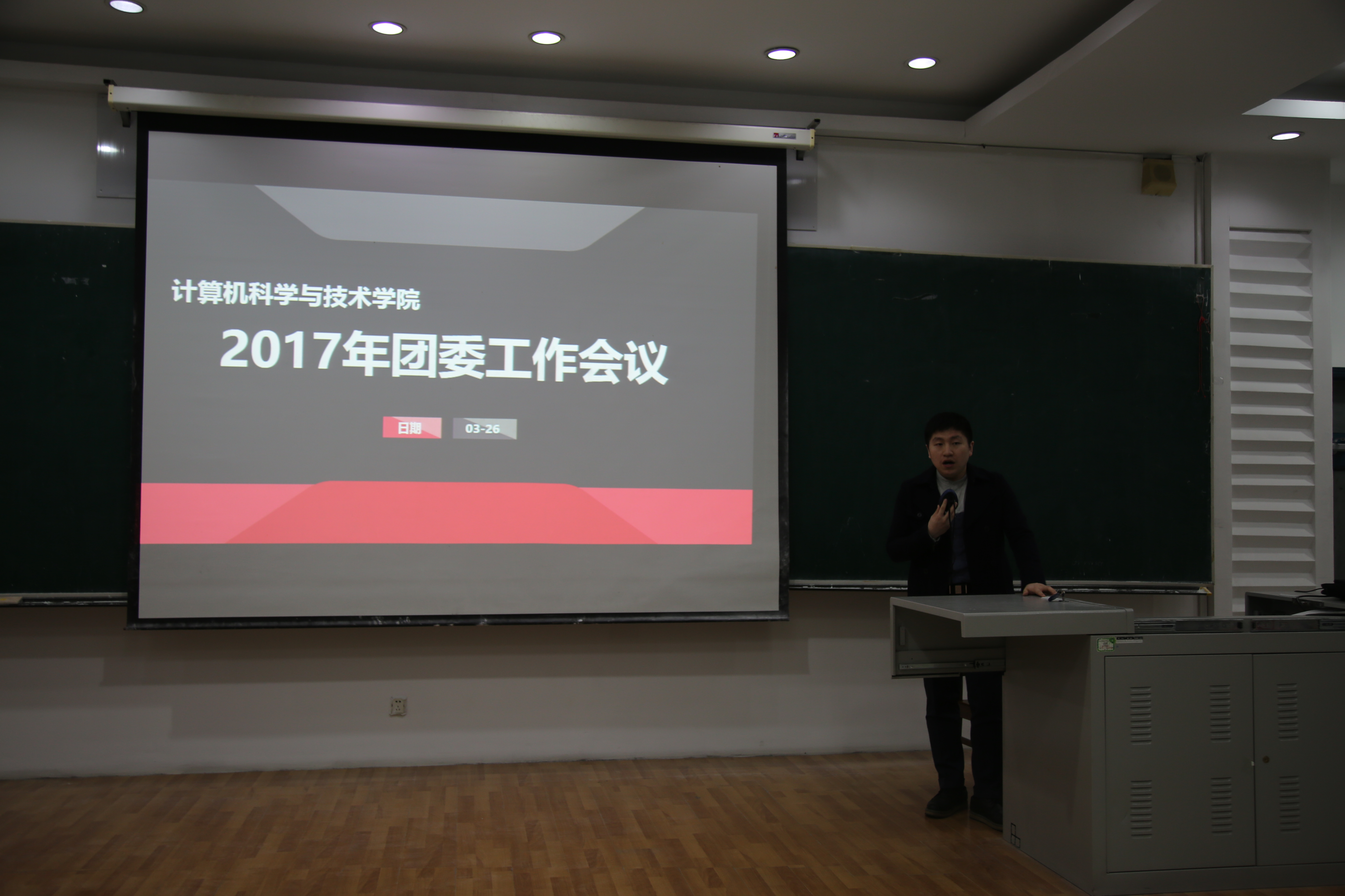 下午6:30,大会准时开始。首先,团委书记于纯浩总结了以往的学生工作情况。提出这阶段学生工作的一些问题,例如学生们在校的礼仪问题,公文写作中经常出现的错误;并对未来的学生工作进行展望,希望同学们都积极认真做事,所有部门团结合作,将富豪娱乐城