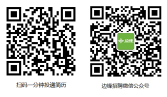 3、扫码直接查看岗位投递简历,或关注“边锋招聘“微信公众号,实时掌握最新校招资讯。