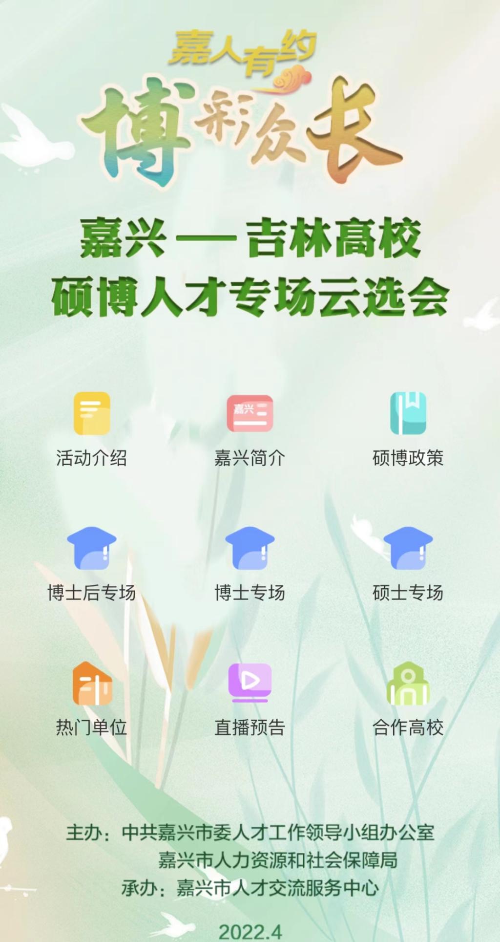 【春季云上招聘月】嘉兴-吉林高校 硕博人才专场云选会