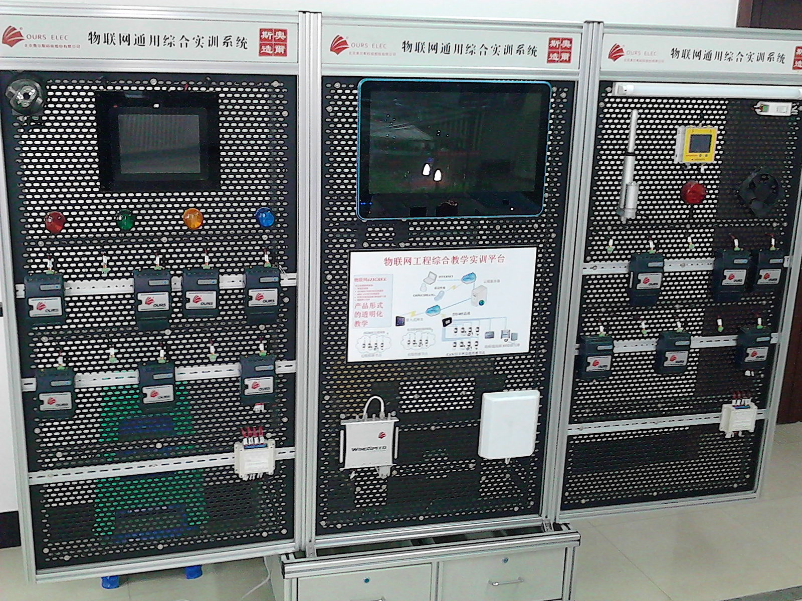 实验室现有设备:联想一体机;服务器;传感器与控制实验箱;无线传感器网络教学实验箱;RFID基础实验箱;ARM9/2440实验教学平台;第三代移动通信系统接入实验平台;智慧家居演示教学实训系统沙盘和RFID图书馆应用系统。实验室主要承担“传感器与控制、无线传感器网络、RFID技术实验、无线网络组网技术实验、嵌入式系统实验、物联网综合应用实验”等实验课的教学任务。实验课均独立设课、单独记学分。这些实验课与物联网工程专业课程体系中专业课程一一对应,实现了对课程体系中核心内容的完整覆盖。通过实验教学培养,使学生能够掌握物联网技术基础,有较为熟练的应用技能,具有较强的物联网综合设计与创新能力。